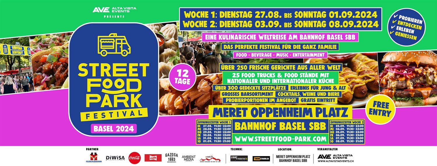 Freunde der Kulinarik aufgepasst! In diesem Jahr machen wir zum vierten Mal Halt auf dem Meret-Oppenheim-Platz in Basel. Nach der letztjährigen erfolgreichen Veranstaltung kommt das Street Food Park Festival nun wieder in die Rheinstadt. Direkt neben dem internationalen Knotenpunkt Basel SBB verwandelt das Festival vom 27 August bis zum 08 September 2024 den stark frequentierten Platz in eine Food-Oase, bei der jeder auf seine Kosten kommt. Es erwarten Euch unzählige Spezialitäten und jede Menge Action – das perfekte Festival für die ganze Familie, geschmückt mit zahlreichen kulinarischen Highlights.